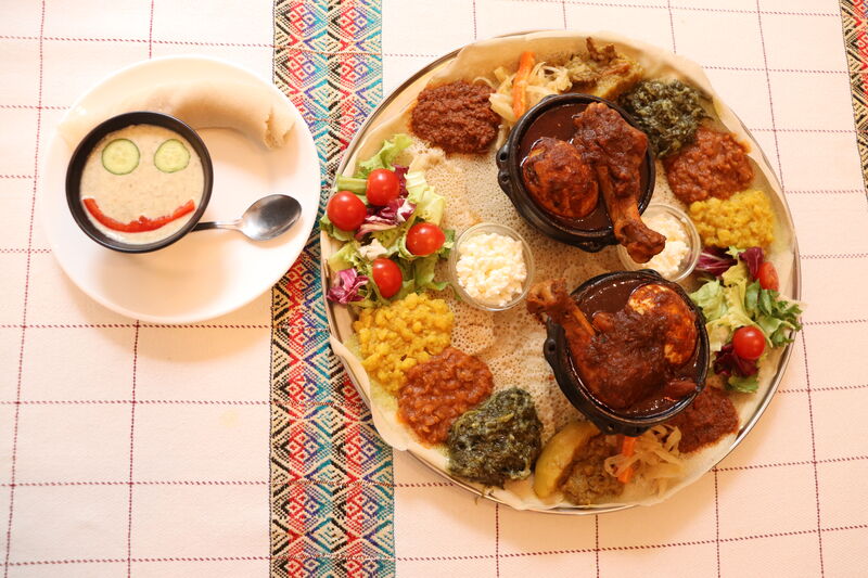 ❤️ Un Yefesek Beyaynetu (assortiment traditionnel avec viande) ou Yesom Beyaynetu (assortiment vegan)